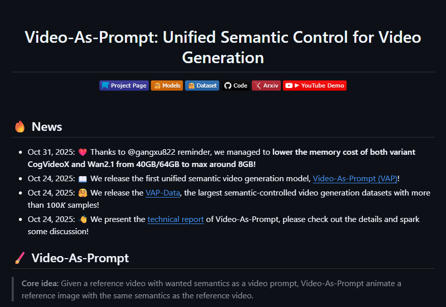 من أبرز مشاريع الأسبوع على Arxiv، أداة Video-as-Prompt التي تحول البرومبتات النصية إلى محتوى فيديو ديناميكي باستخدام تقنيات الذكاء التوليدي. |