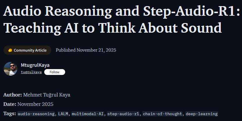 مقال "Audio Reasoning and Step-Audio-R1" من HuggingFace |
