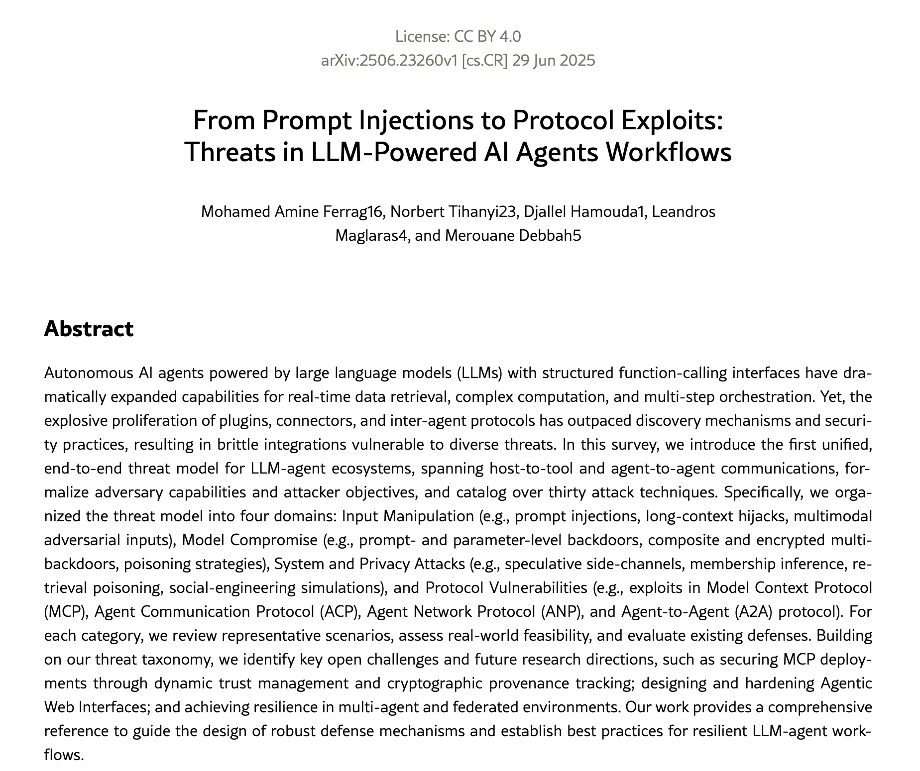 ورقة: Threats in LLM‑powered AI agents workflows |