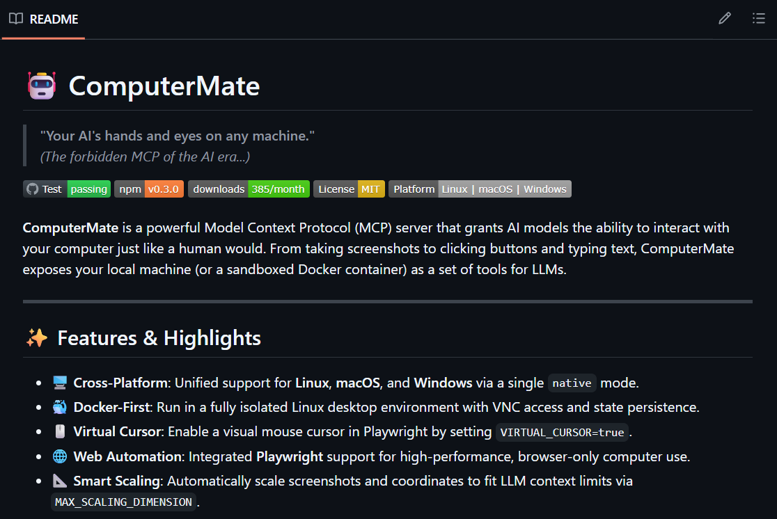 ما هي؟ خادم Model Context Protocol أو MCP (معيار لربط النماذج بأدوات وأنظمة) يهدف لمنح النماذج قدرة “computer-use” لتنفيذ خطوات على الجهاز. الفكرة أن النموذج لا يكتفي بالاقتراح، بل يستطيع تنفيذ سلسلة خطوات ضمن بيئة سطح مكتب عبر ربطه بأدوات. |