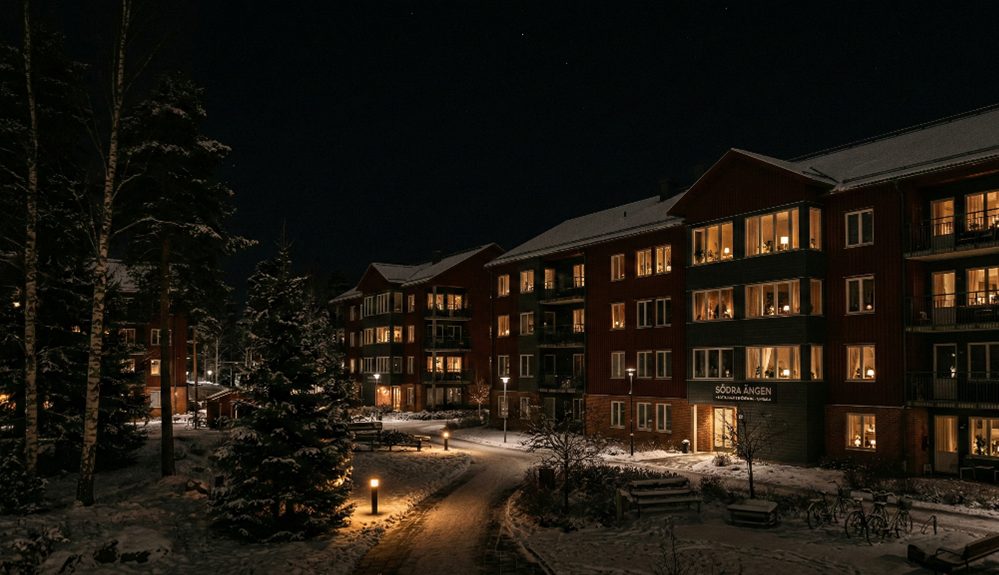 وفي داخلي تمازجت رهبة الغربة مع نشوة الاكتشاف. رهبةٌ لأنك تقف على تخوم ثقافةٍ جديدة، مما استوقف بصري هنا تلك المنازل، كأن أهلها أدركوا سرّ الألوان وأتقنوا توزيعها؛ فاختاروا لكل موضعٍ نبرته؛ الثلج حول البيوت حريرٌ أبيض يكفي المشهد مهابةً وضياءً، وفي الداخل شمسٌ خافتة تسكن المصابيح، لا يخلطون البياض بالبياض، بل يوازنون بين صفاء الخارج وعسل الداخل. ويا لروعة هذا الليل حين تنهض البيوت القرمزية كشموعٍ ثابتة في ممر الصقيع. النوافذ عيونٌ مضاءة، خلفها حكاياتُ لا يمكن التنبؤ بها، والطريق يتلوّى في رفقٍ كجدولٍ من فضة، وعلى جانبيه مصابيحُ صغيرة تُمسك بطرف العتمة وتحوّلها إلى صحبةٍ لينة. وهكذا كان المشهد في كل ليلة. |
