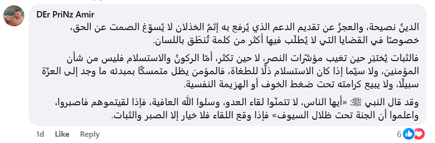 ![]() ردا على السؤال عن من سار إلى أرض العدو غير مقاتل، مثل أسطول الصمود |