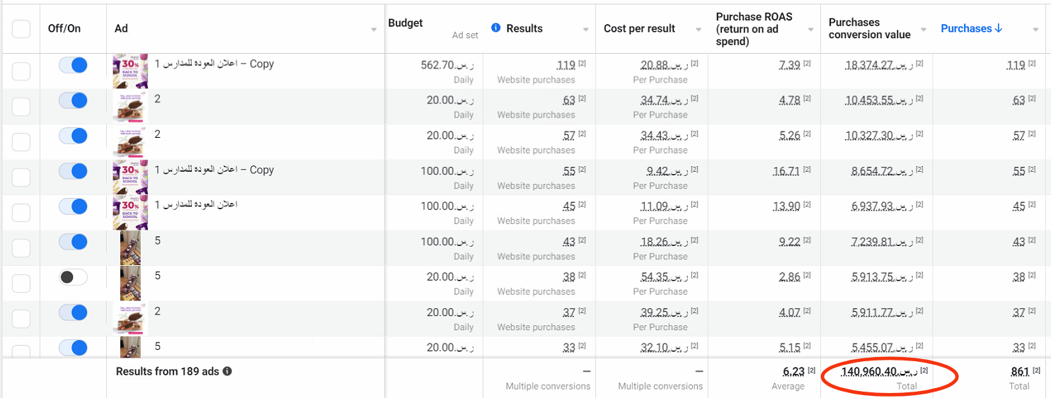 👈🏻 في حال لم تكن هناك مبيعات، اختر المنتجات التي حققت أعلى CTR وركّز على بقية الأرقام، ولكن هذا هو الأهم. |
