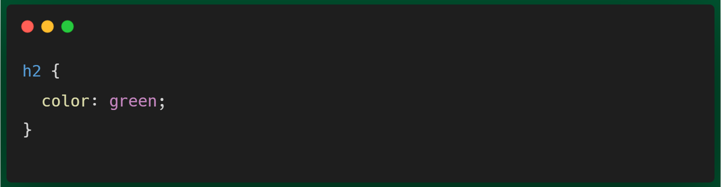 هذا الكود سيجعل جميع عناوين <h2> في الصفحة باللون الأخضر. |