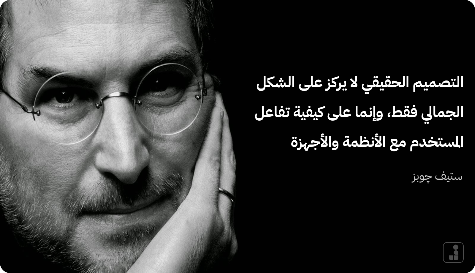 التصميم الحقيقي لا يركز على الشكل الجمالي فقط، وإنما على كيفية تفاعل المستخدم مع الأنظمة والأجهزة ستيف چوبز - تمت الترجمة بتصرف من فريق محتوى فيجماوية |